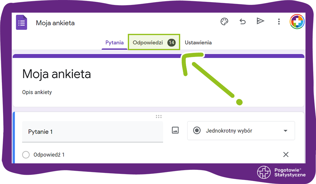 2. W podglądzie ankiety, który się pojawi, przejdź do zakładki “Odpowiedzi”: